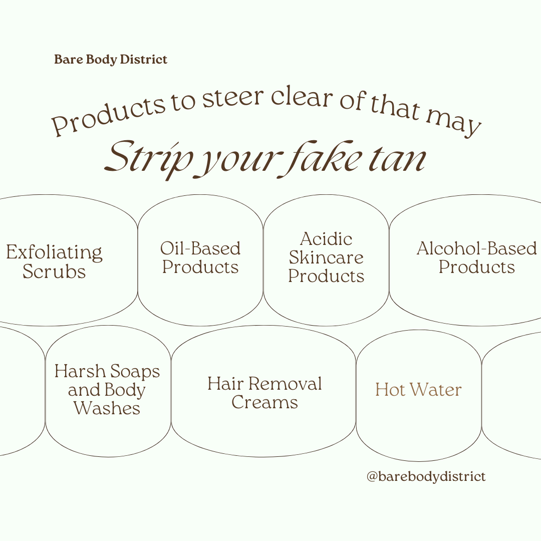Oil-Based Products: Oil-based moisturizers, cleansers, and makeup removers can break down the tanning solution, leading to uneven fading. Look for oil-free alternatives to keep your tan intact.